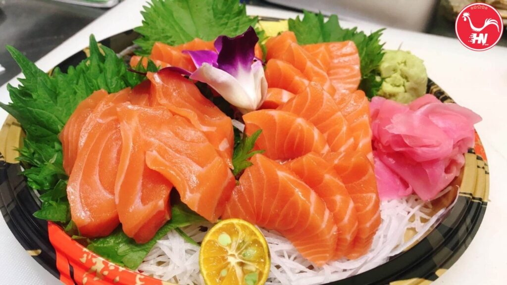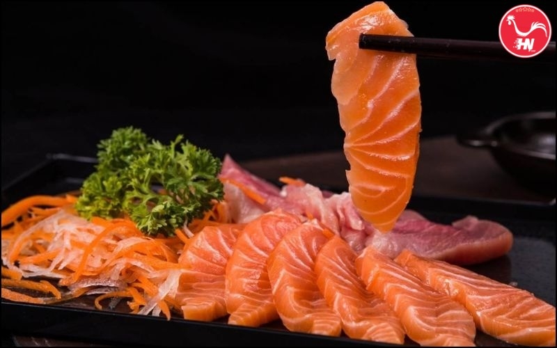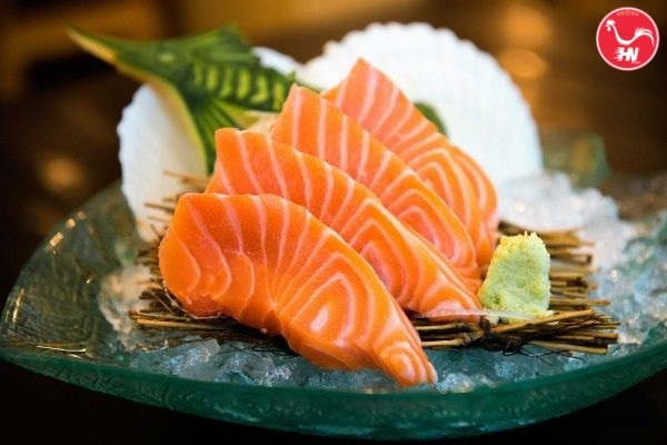 - Cá hồi tươi là nguyên liệu quan trọng cho sashimi.